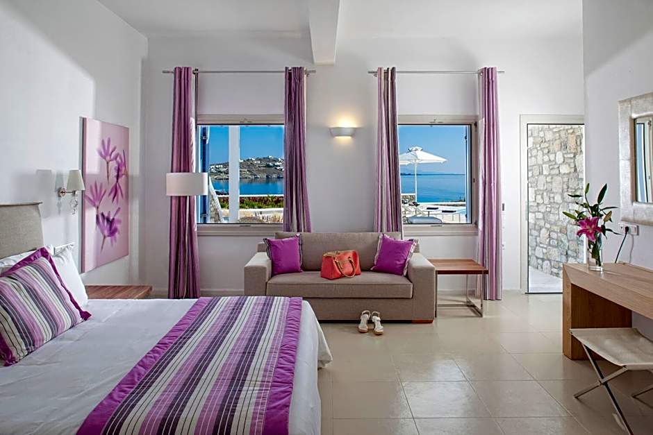 Boasting Aegean sea views from its terrace or balcony, this spacious and bright suite offers a modern bathroom with a bathtub or walk-in shower.